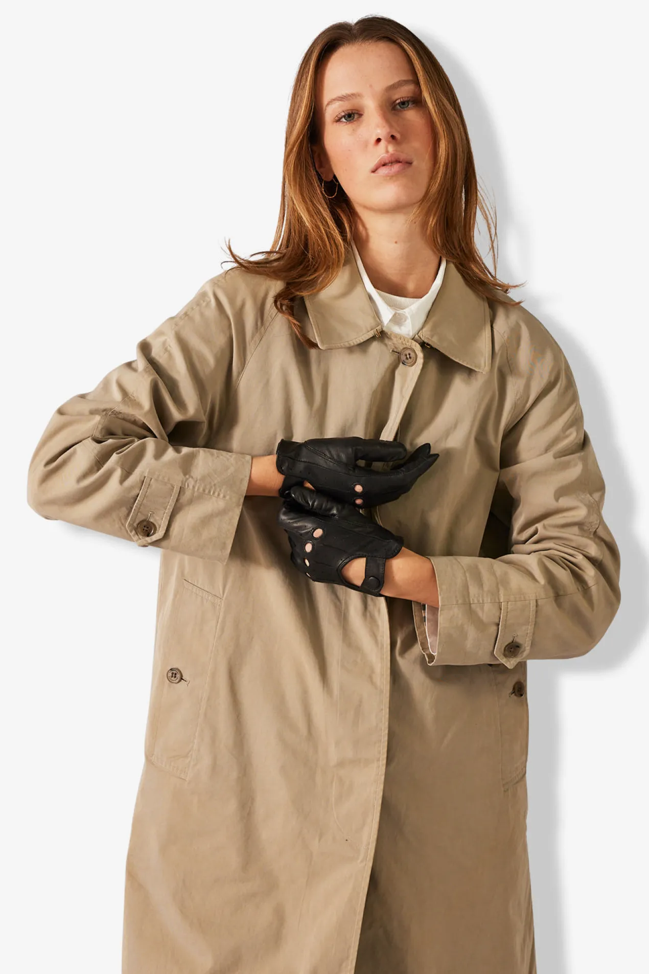 Isabella ladies’ glove is the perfect glove for fall, when all you want is a light glove.Isabella is made from soft leather with a light lining although warm leather material. The gloves give in with use – therefore they should be tight at first. The glove is designed with holes at the knuckles, as well as a stylish design with a button closure at the wrist.Isabella ladies’ glove is perfect for changing season, as driving gloves or simply a slimmer alternative.The gloves are available in size S, M and L.