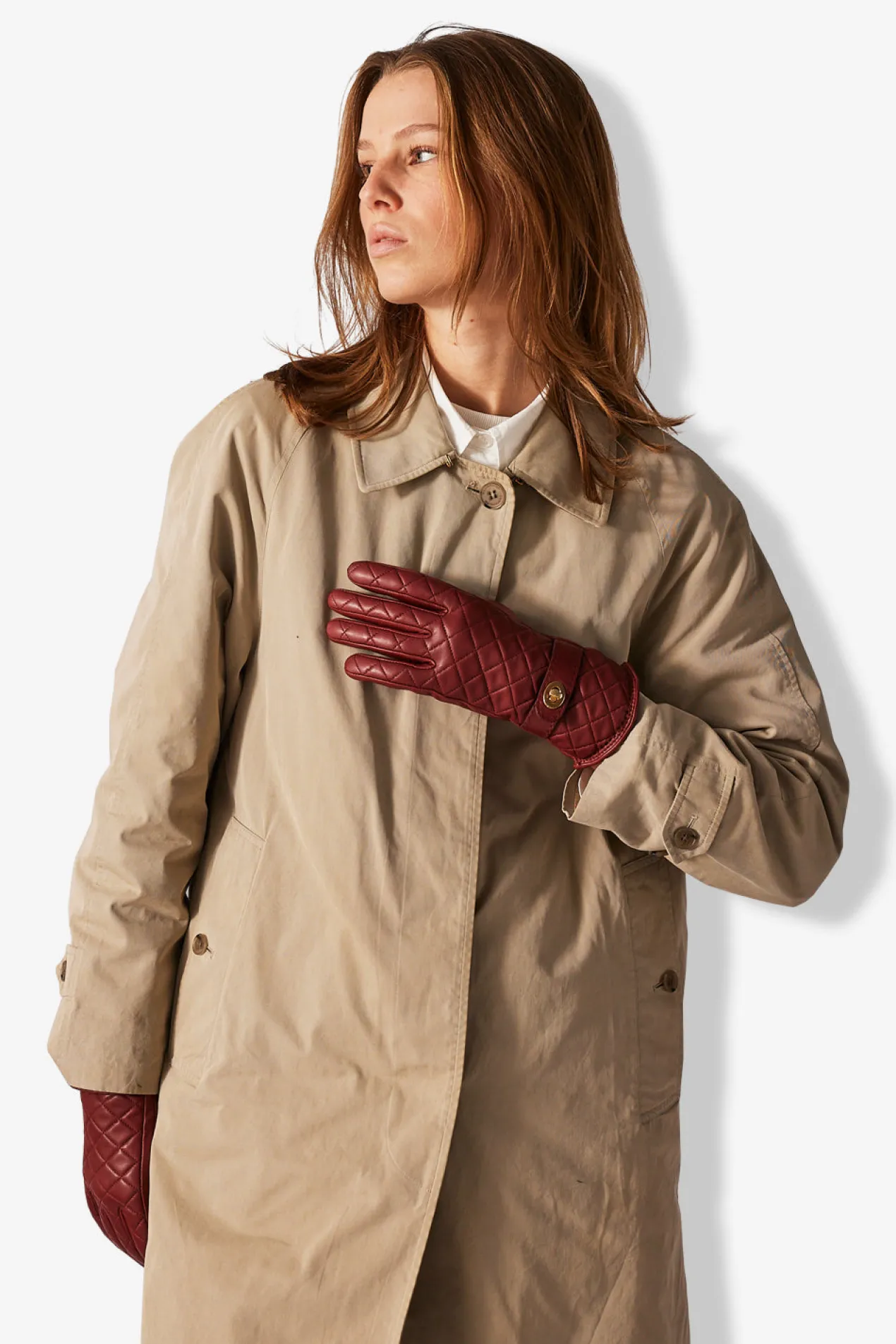 Adax gloves Sidse. Colored gloves in a nice quilted pattern with lock detail at the wrist. Warm lining in 85% wool and 15% cashmere. There is a touch function in the index finger and thumb on both the right and left gloves.