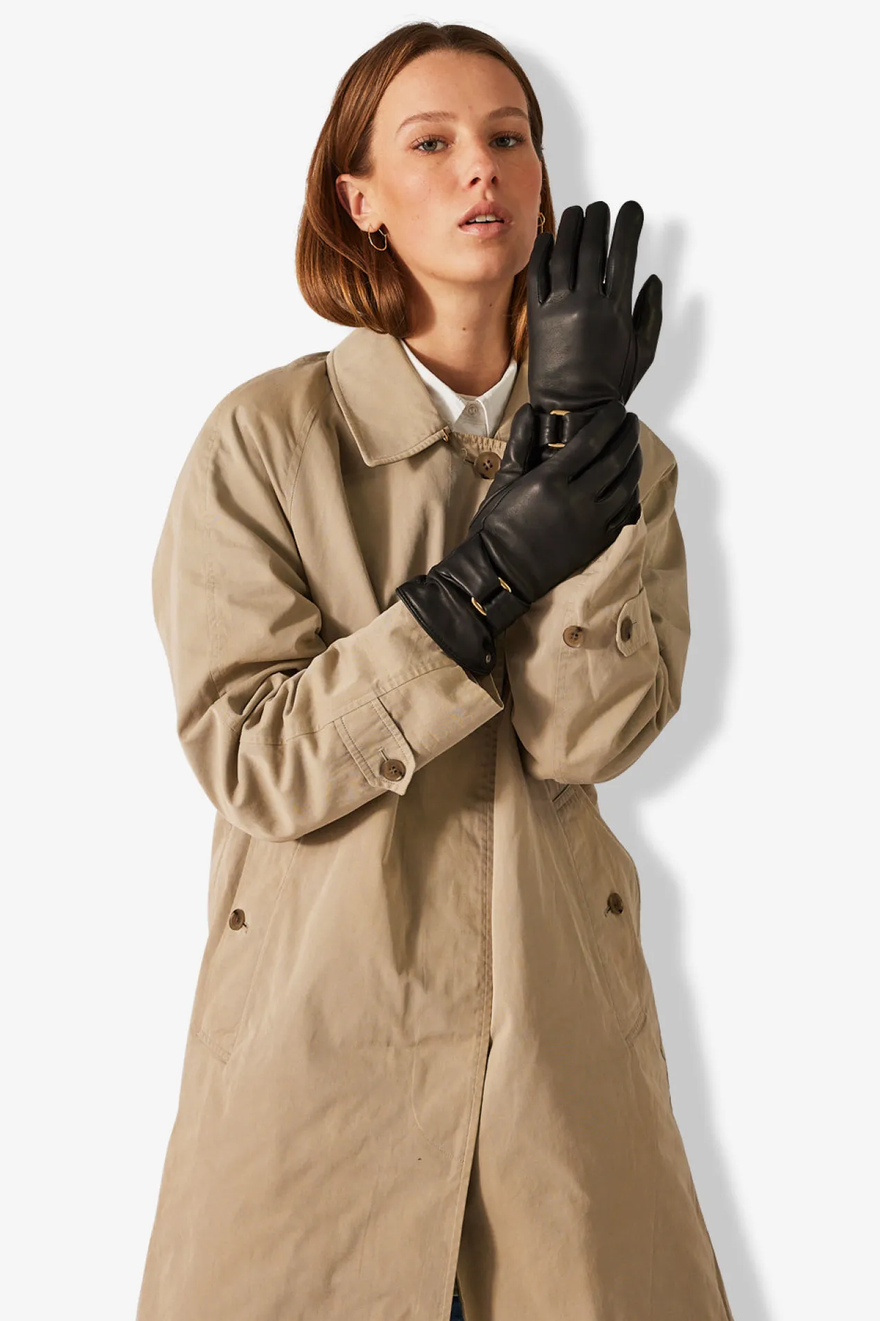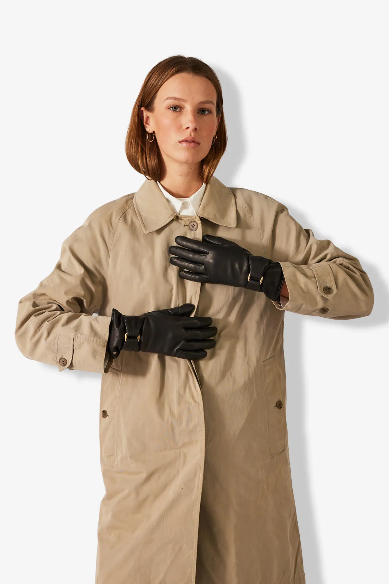 Adax glove Sonja. Colored gloves with gold fittings at the wrist. Warm lining in 85% wool and 15% cashmere. There is a touch function in the index finger and thumb on both the right and left gloves.
