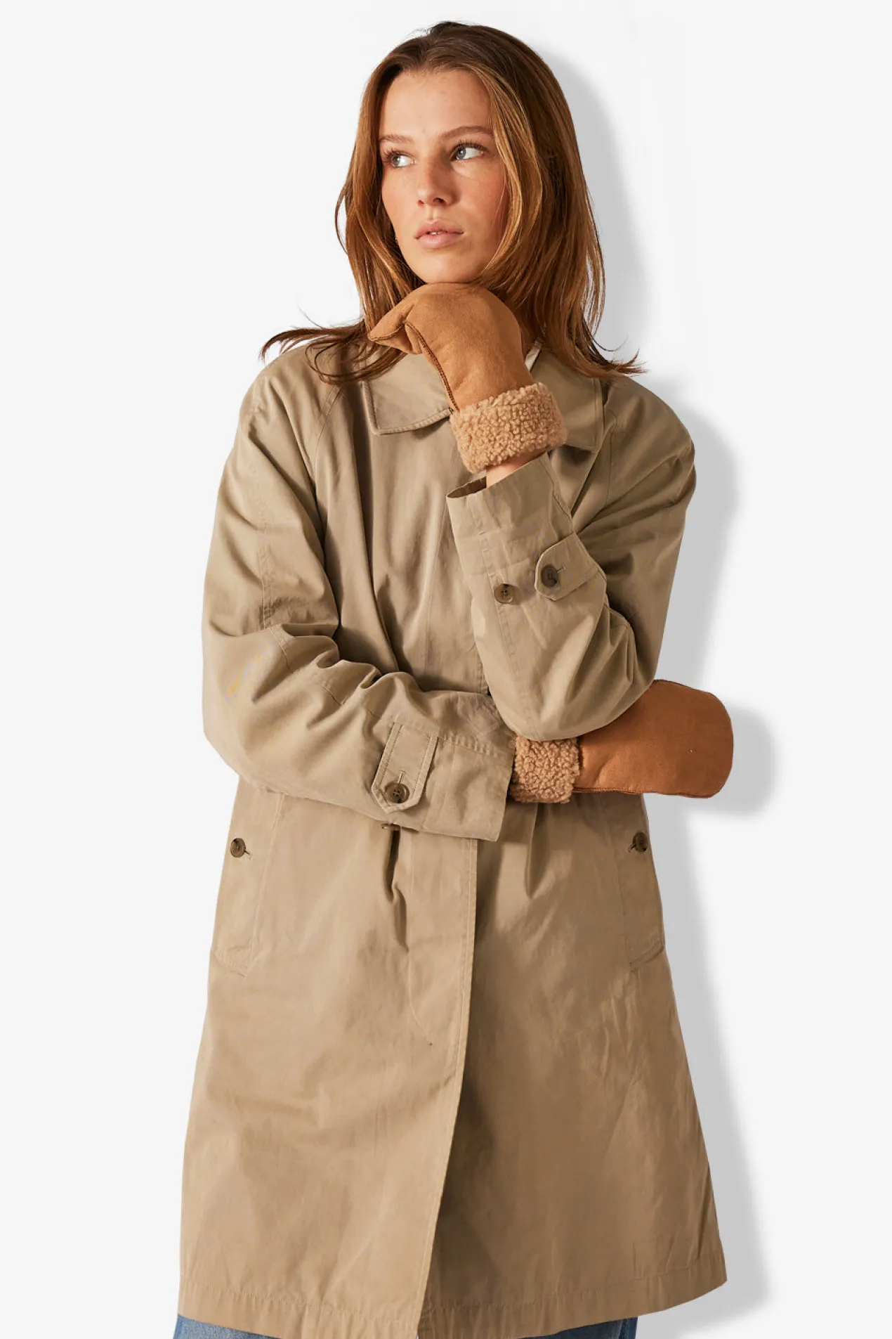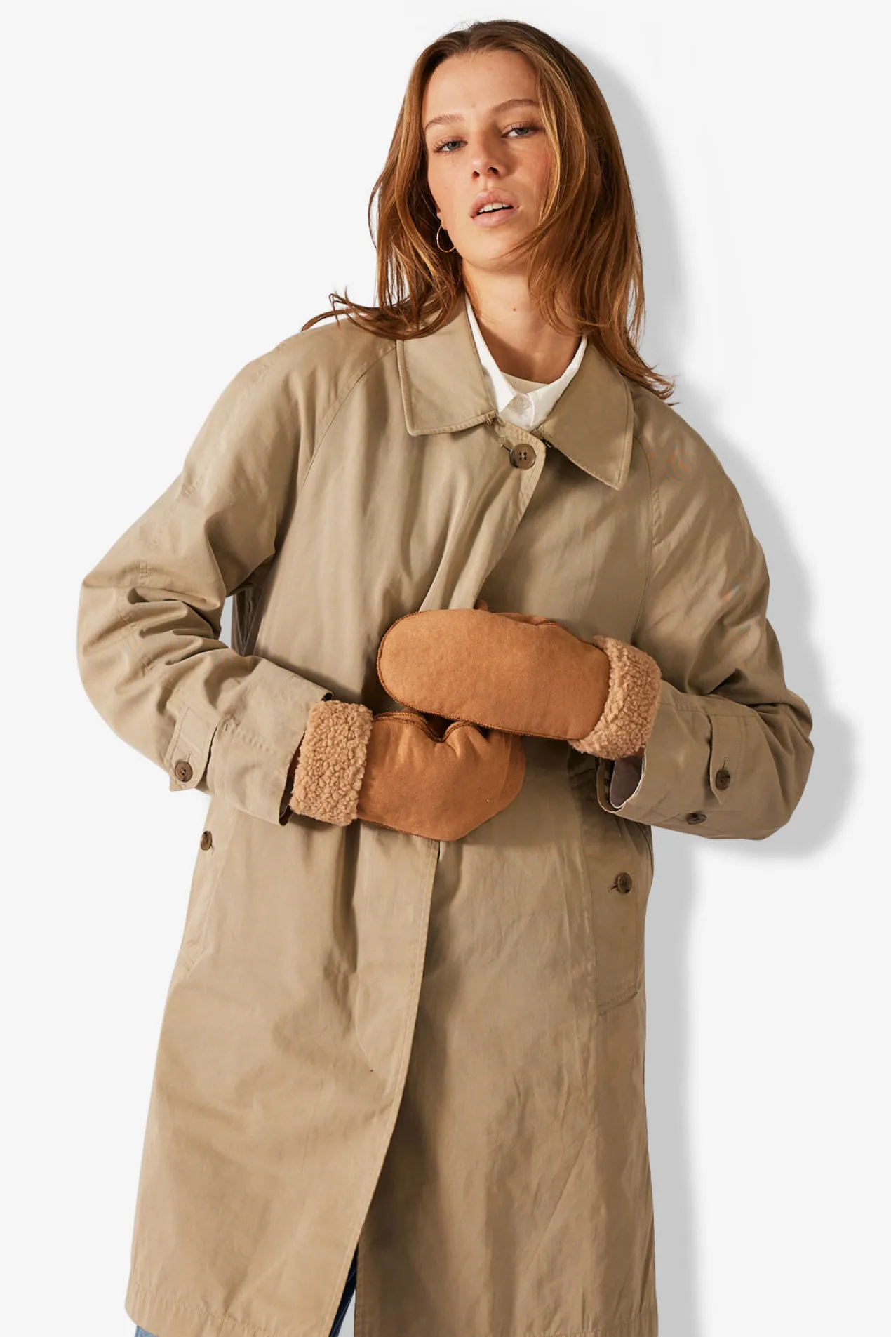 The Adax mitten Mary is made of 100% polyester, imitation suede on the outside and imitation pearl lamb on the inside, has a nice fold so you can see the lining.