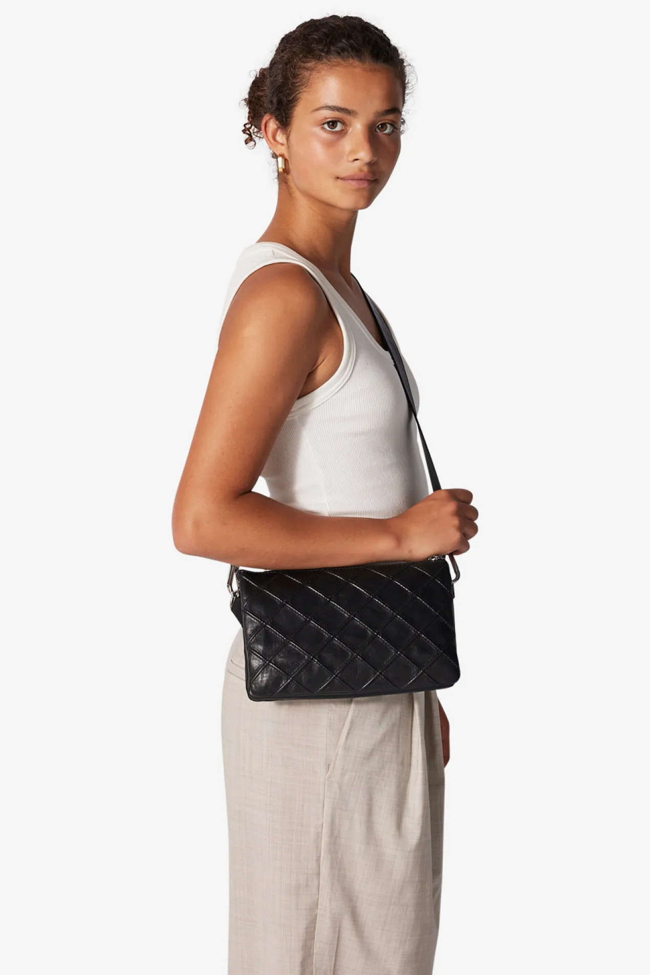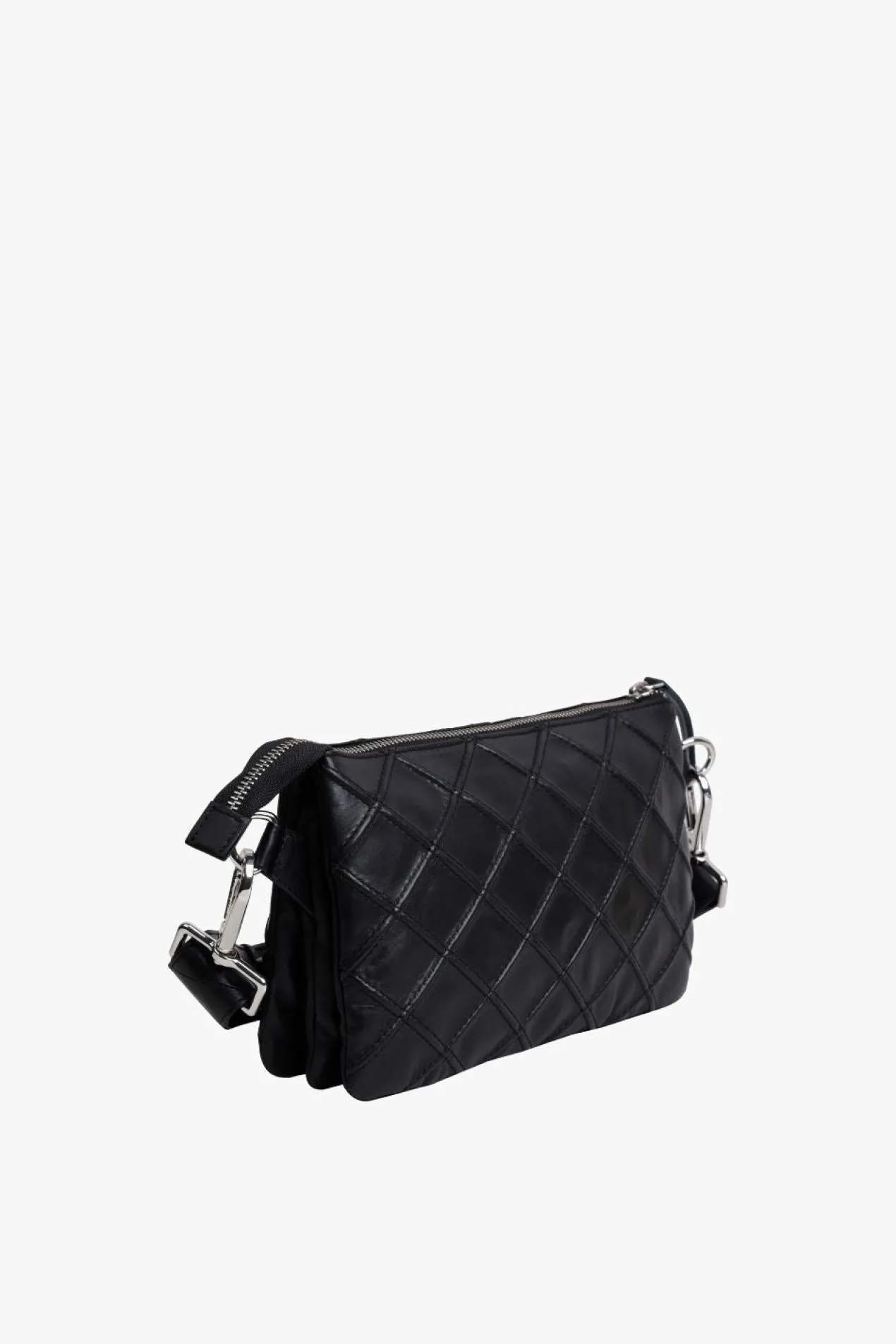 Gisele shoulder bag with a beautiful quilted check pattern in Amalfi leather by Adax. Functional and spacious shoulder bag with adjustable strap that allows the bag to be used as a crossover. The bag closes with a zipper at the top of the bag. There are four open compartments, zipper compartments and an inside zipper pocket and an open leather pocket. The bag comes with a tote bag and a warranty leaflet that can be used as a card holder.