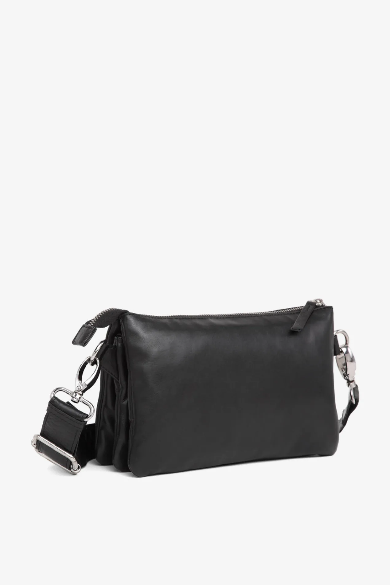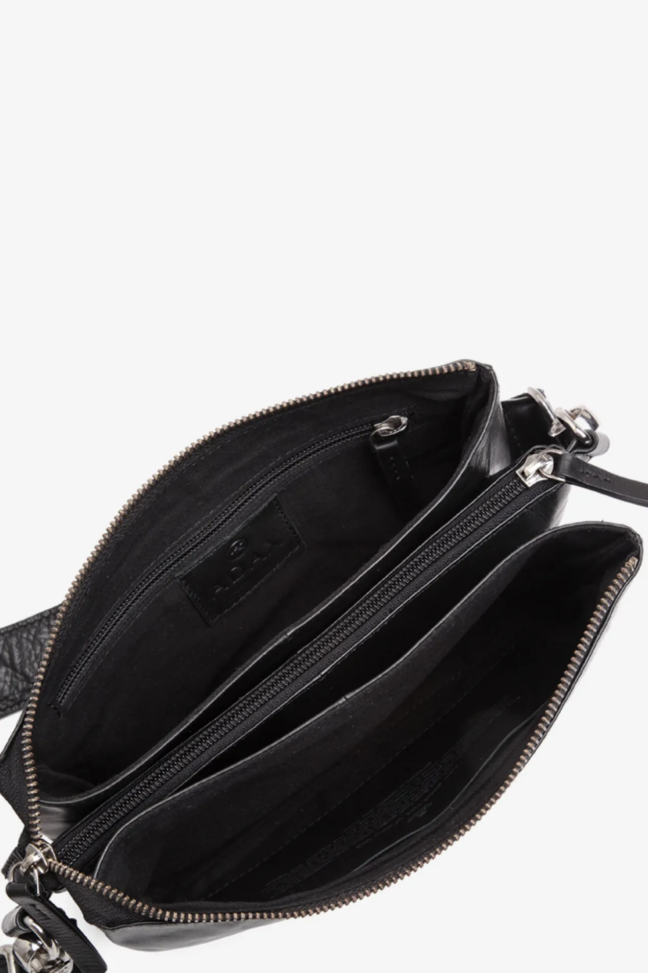 Stylish Molly bag with multiple functions. The bag can be used crossbody with a shoulder strap and as a clutch as the shoulder strap is detachable. The size of the bag is perfect whether it is used one way or the other.The main compartment of the bag is divided into three smaller compartments. The compartment in the middle closes with a zipper to keep your important things safe.The two other compartments are open – there is a small zip pocket in one of the compartments and a small open leather pocket in the other compartment.The bag closes with a zipper. On the back of the bag, there is a flat compartment, which closes with a push button, for the things that need to be easily accessible for you.