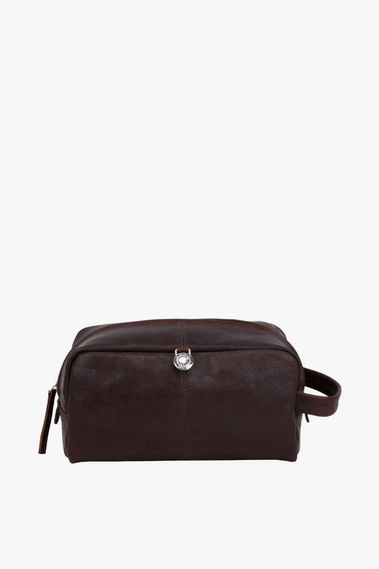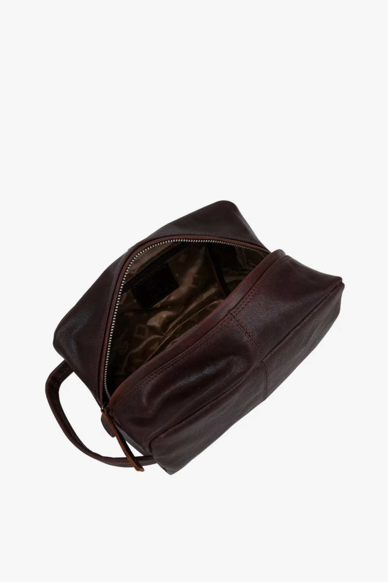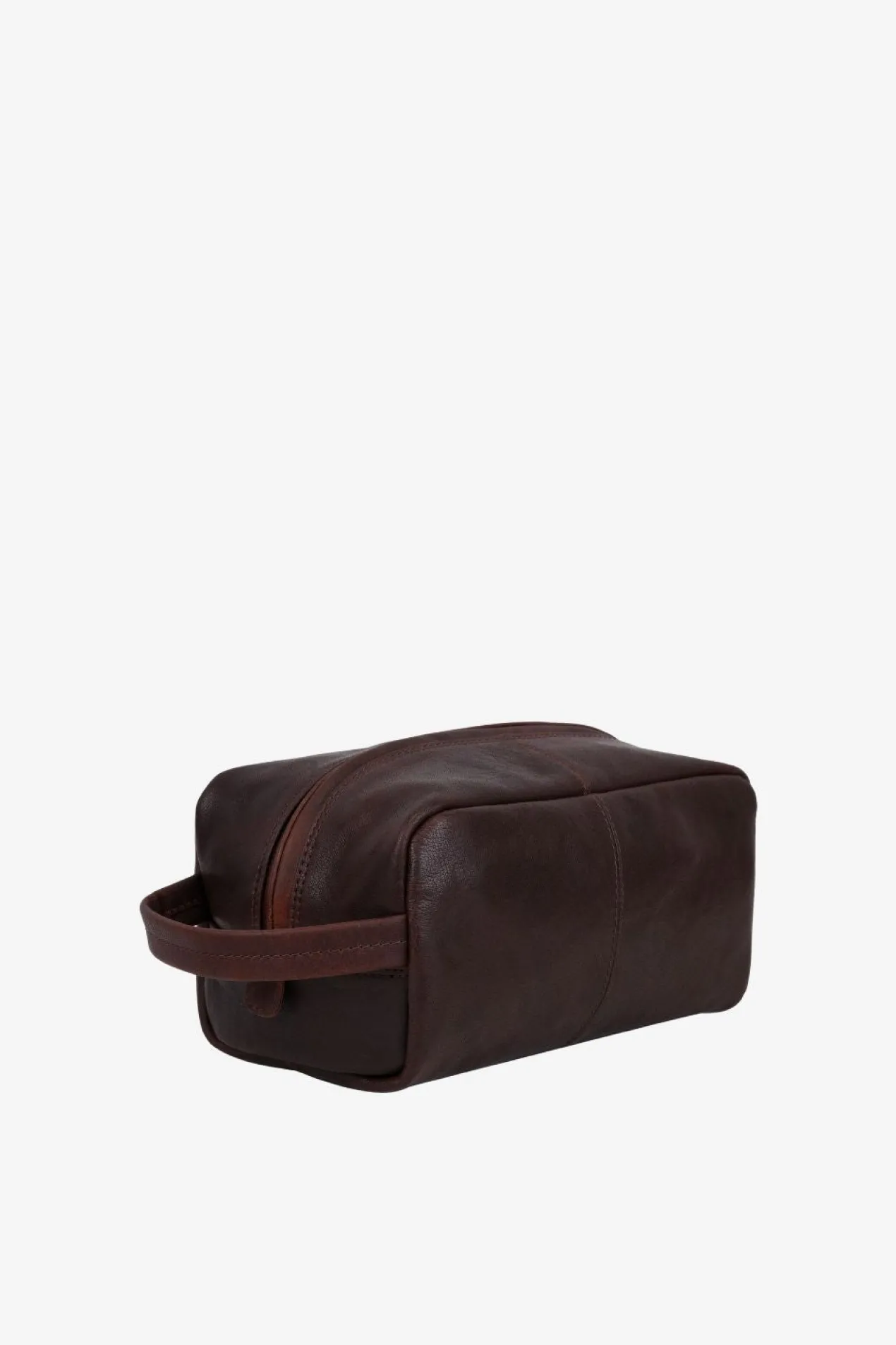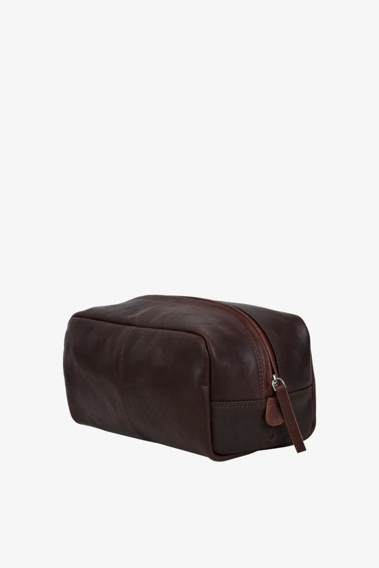 Harry wash bag in Catania leather from Adax. The wash bag is spacious with a wide opening. Inside, a large, lined compartment with a small, zipped pocket for small items. There is a practical carrying handle on the outside.