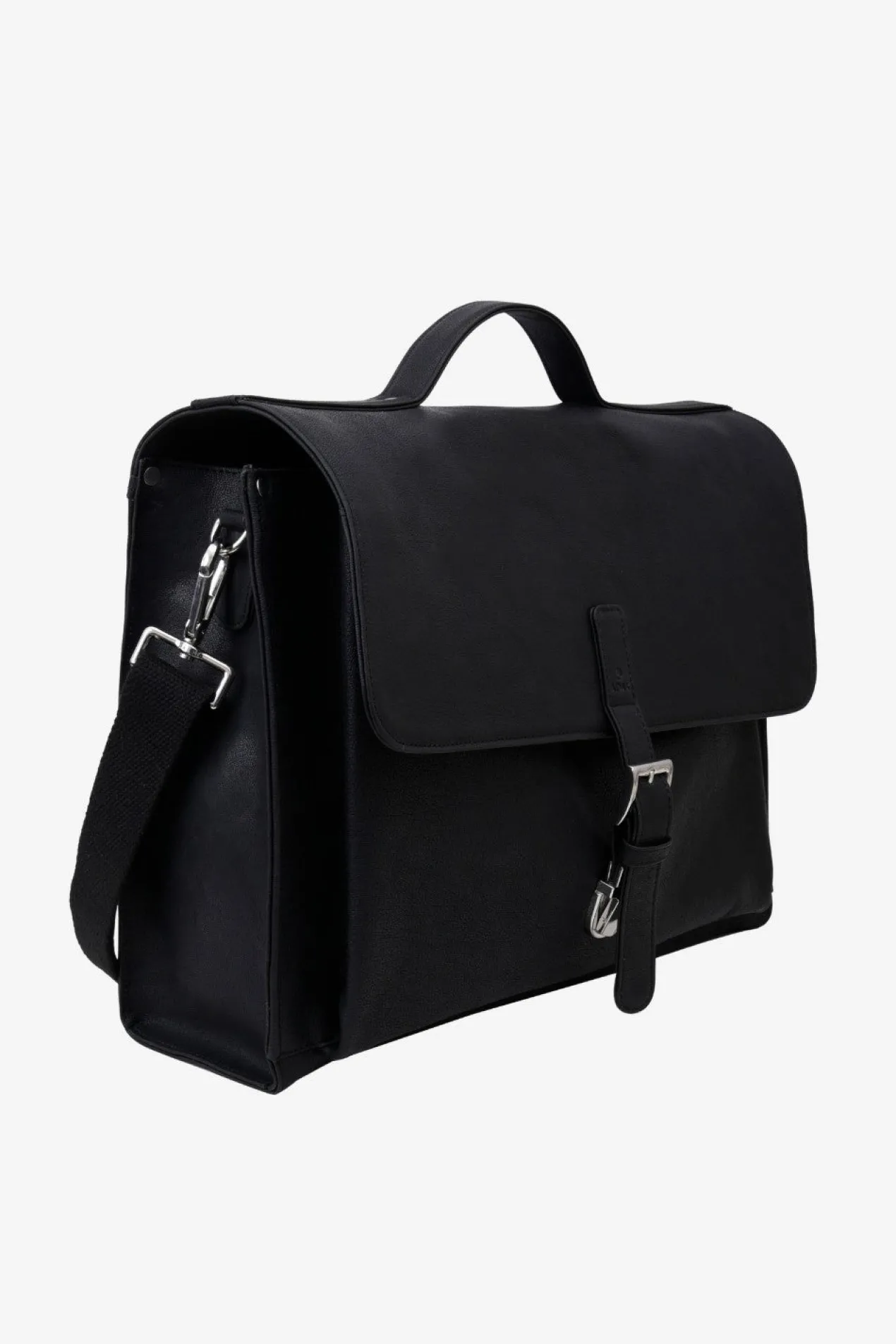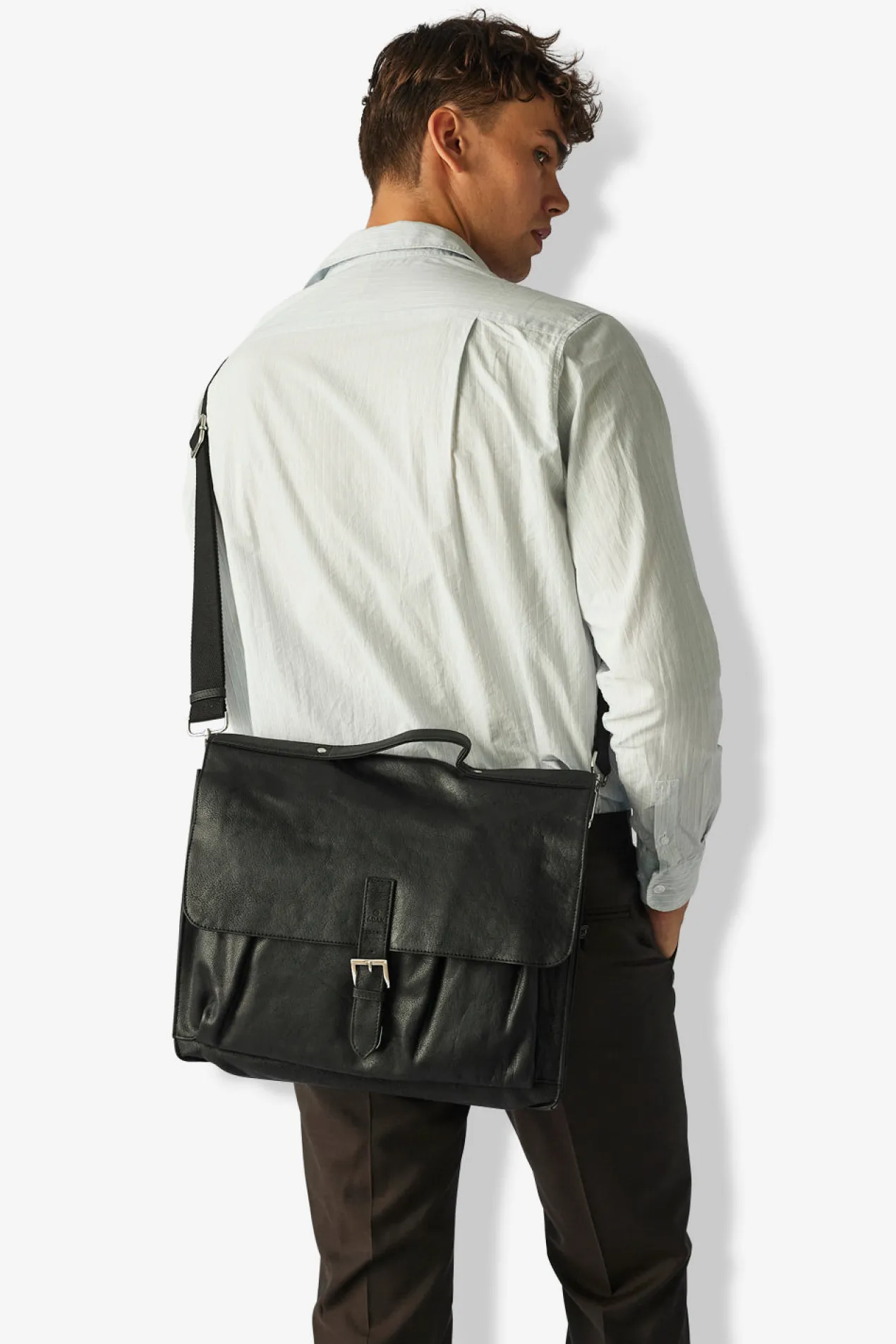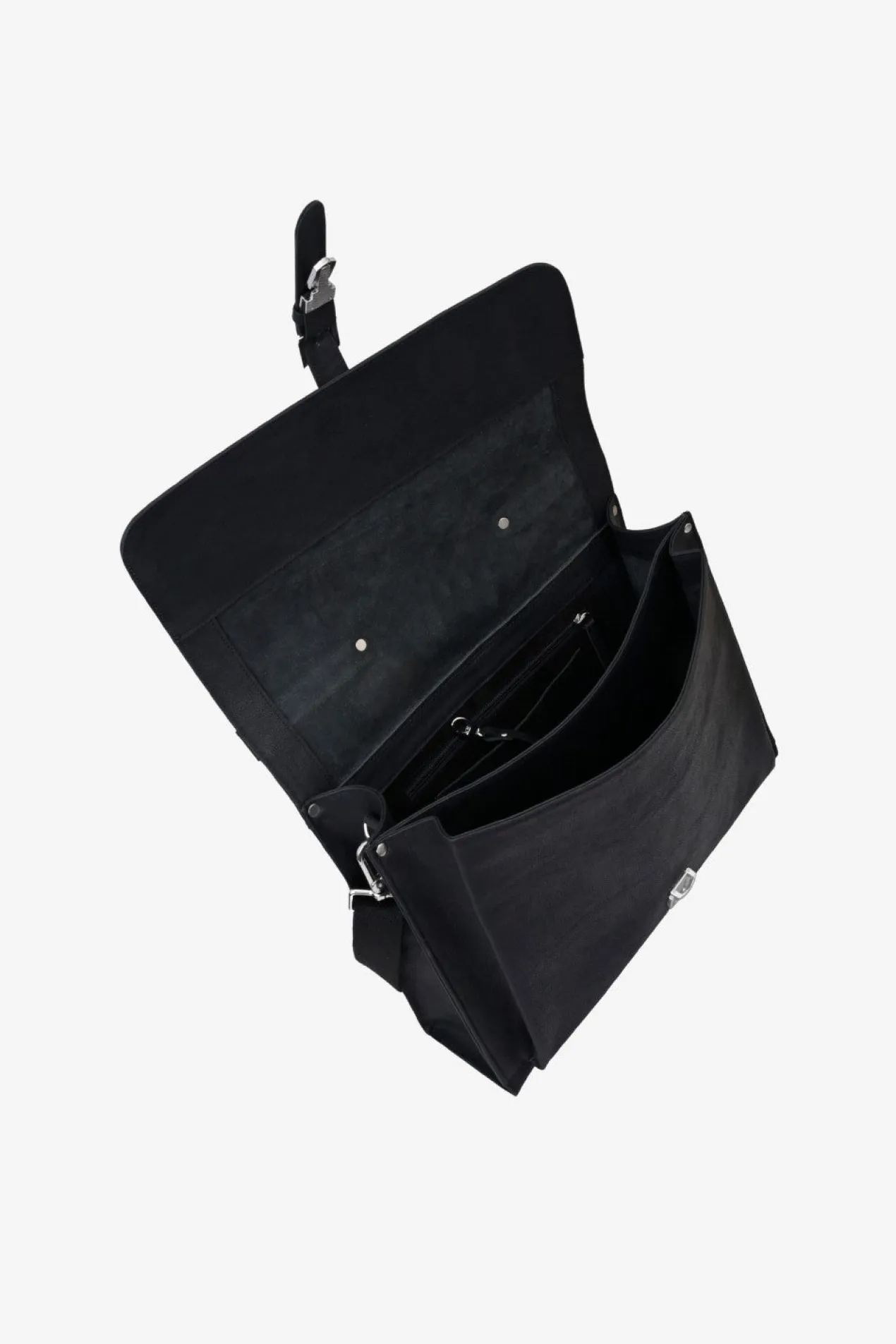 Jarl working bag in Catania leather. Inside there are 2 large compartments, in one compartment there is a small zipped pocket as well as an open pocket and a key lanyard! The pockets are super practical for the small things you need to find quickly. The bag easily holds a 13″ laptop! The bag closes with a flap and a buckle and has a long adjustable canvas strap. The bag is not lined.