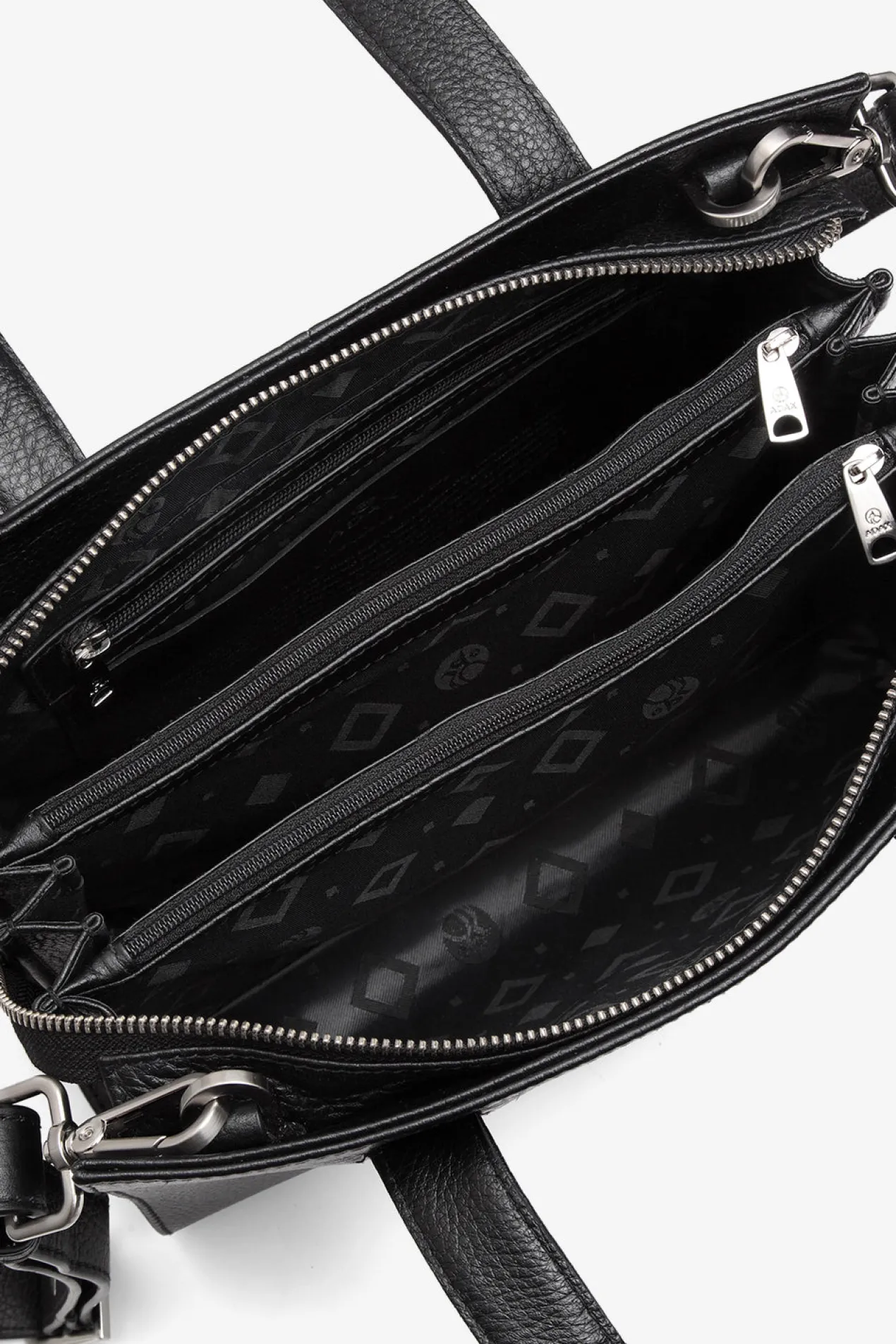 Elea is the little sister to the larger Aline handbag and is really great for everyday use. The design is simple and stylish and then it may be carried in the two handles or in the detachable shoulder strap.The bag has a zipper closure and consists of three great rooms separated with two thin zipper pockets. In the back room, there is a small zipper pocket with an open leather pocket, for a smartphone. On the back of the bag is another fine and discreet zipper pocket.This Adax handbag is perfect for everyday life and may be used for what you like.