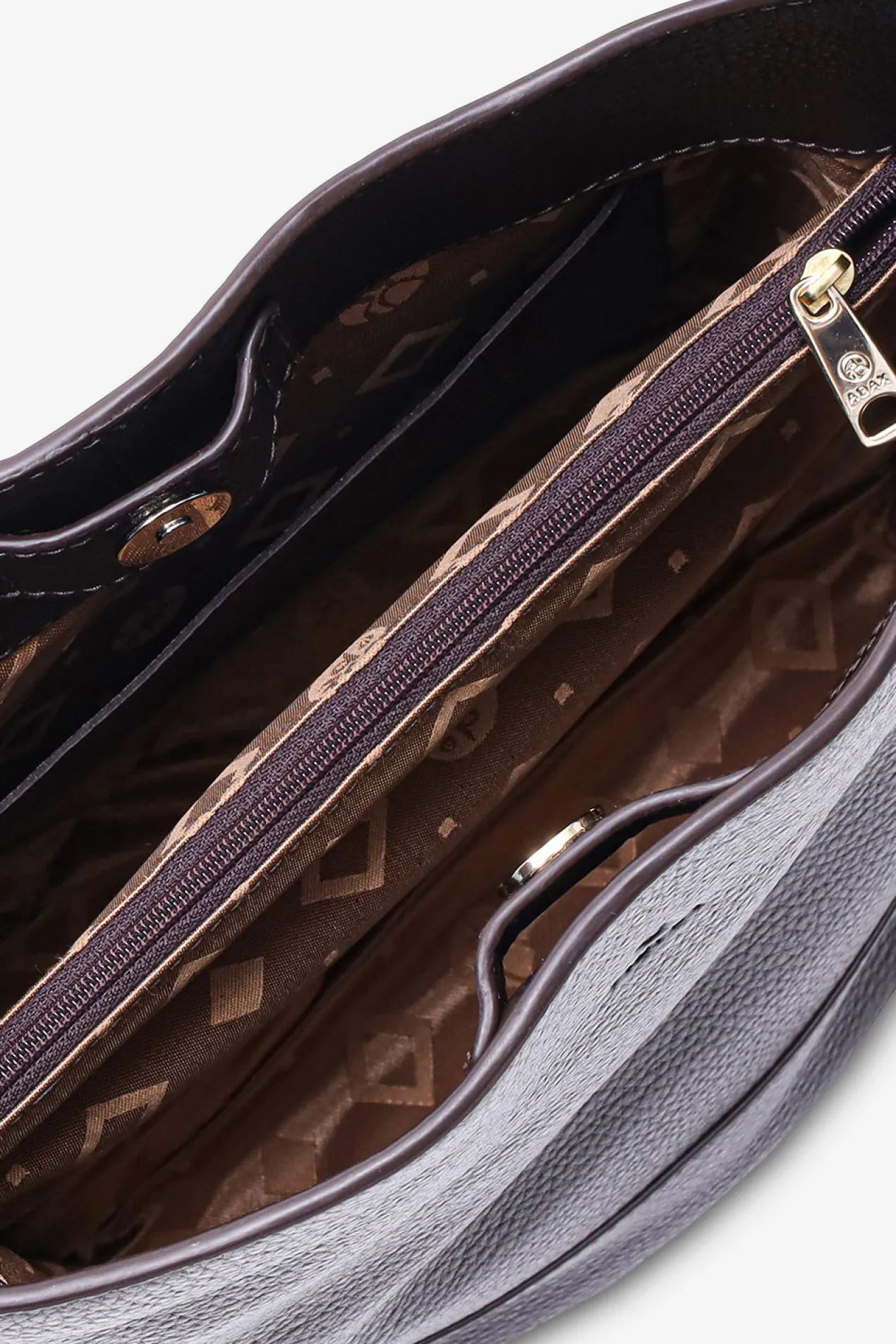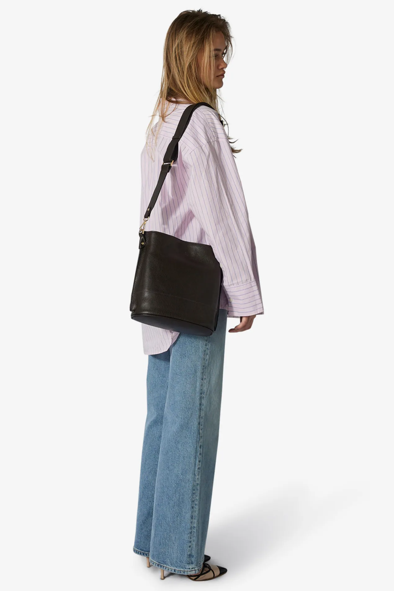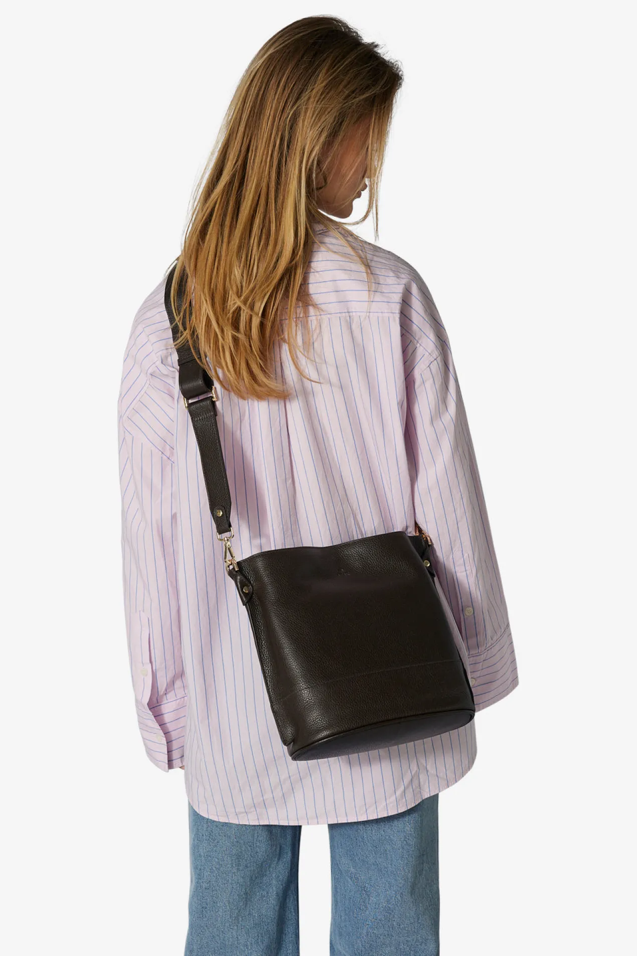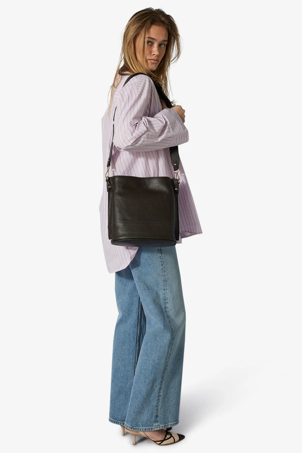Kristin skuldertaske i Cormorano skind fra Adax. Kristin skuldertaske med regulerbar rem, så den kan bæres både som crossover og som skuldertaske. Tasken lukkes i toppen med en magnetlukning. Indvendig består tasken af 2 rum delt af en smal lynlåslomme. Der er yderligere en smal lynlåslomme i foeret og en åben læderlomme. Der medfølger en lille garantifolder som kan bruges som kortholder samt et bomuldsnet.