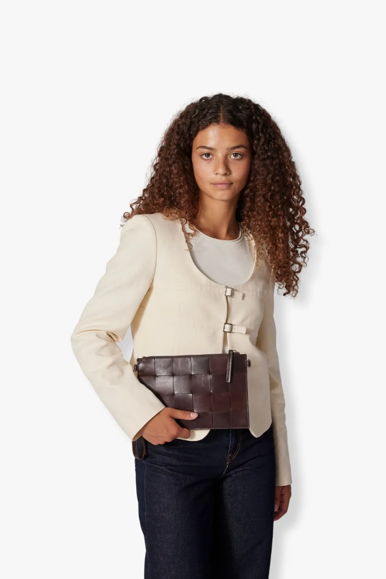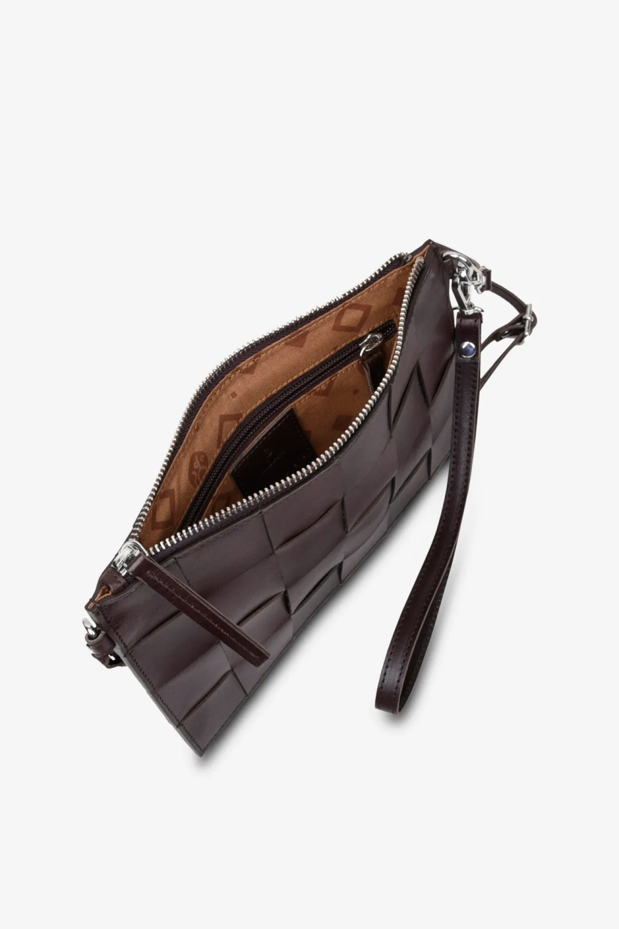 Find the perfect accessory for your evening out with our Limona combi clutch in dark brown. The small, handbraided design exudes elegance and style, making it the ideal companion for any night event. Upgrade your outfit and make a statement with this stunning piece.
