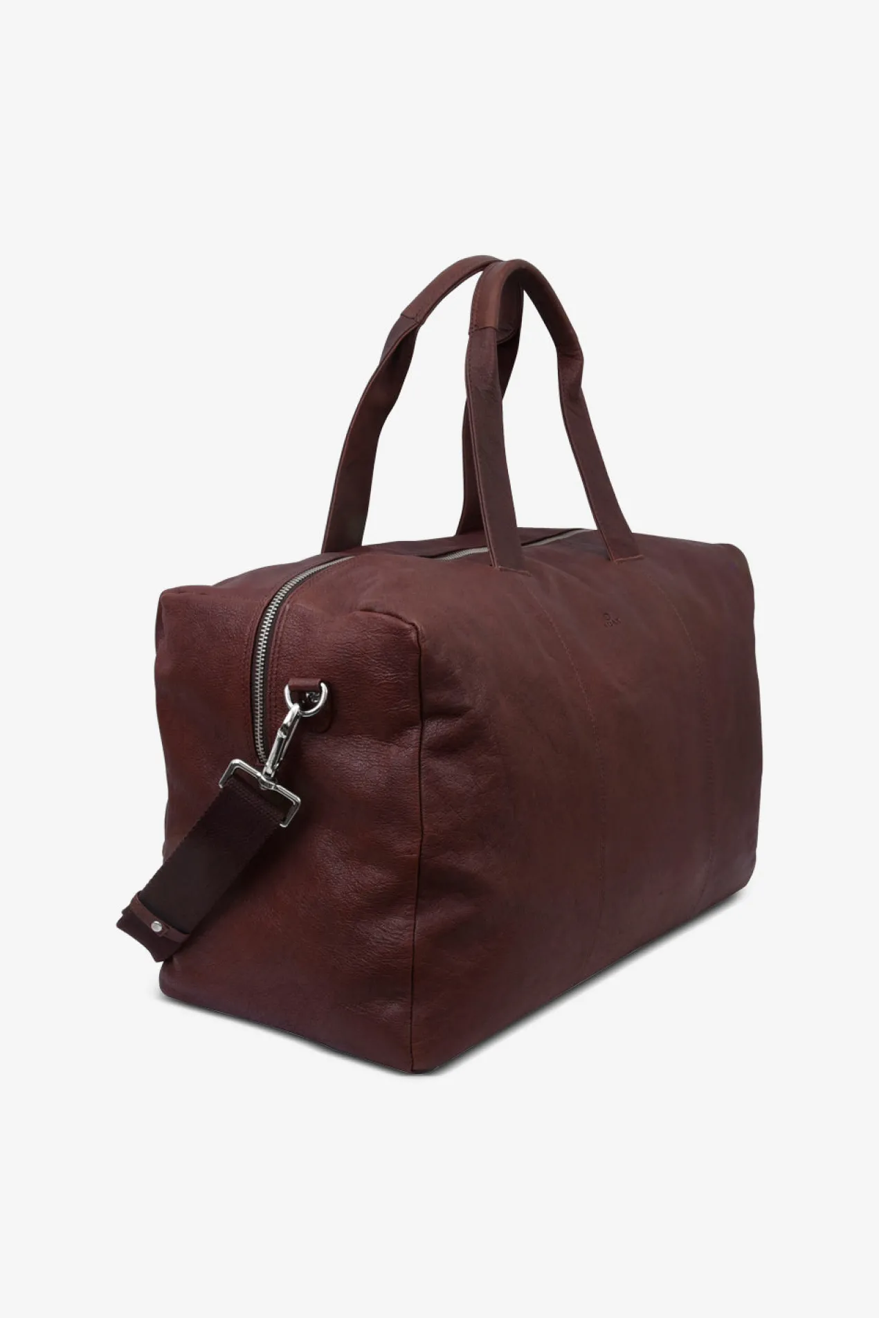 Franklin travel bag in Monza leather from Adax. Large roomy bag with adjustable strap in canvas. Inside there is a large open space. On one side of the bag there is a large, zipped pocket and on the opposite side there is an open leather pocket for e.g., a phone. On the outside, there is a wide zipped pocket on the back. Brilliant travel bag.
