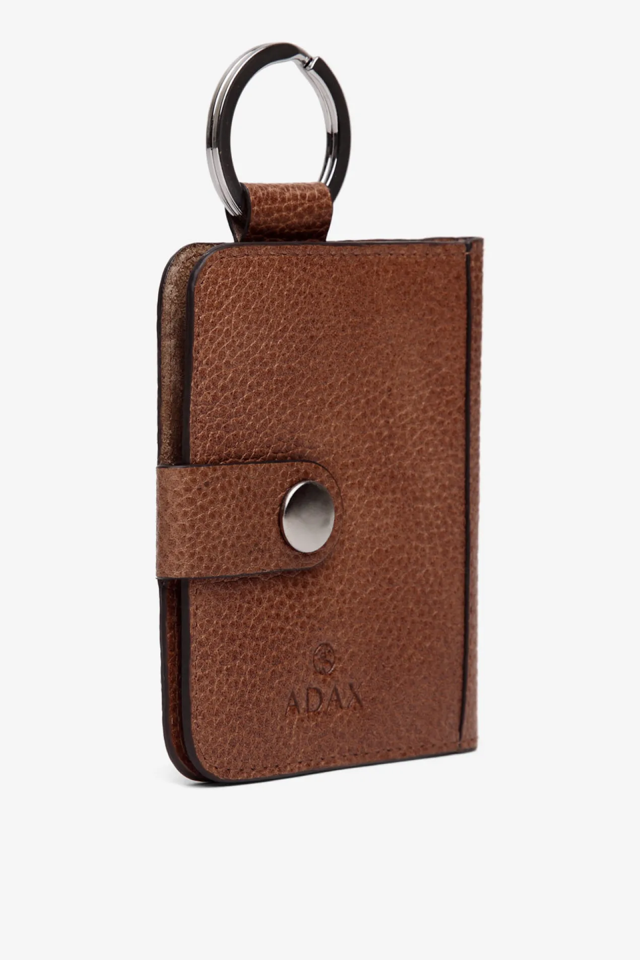 Mamie key purse in Naples leather from Adax. Small credit card purse / key purse with space for two cards and keys. Closes with push button.