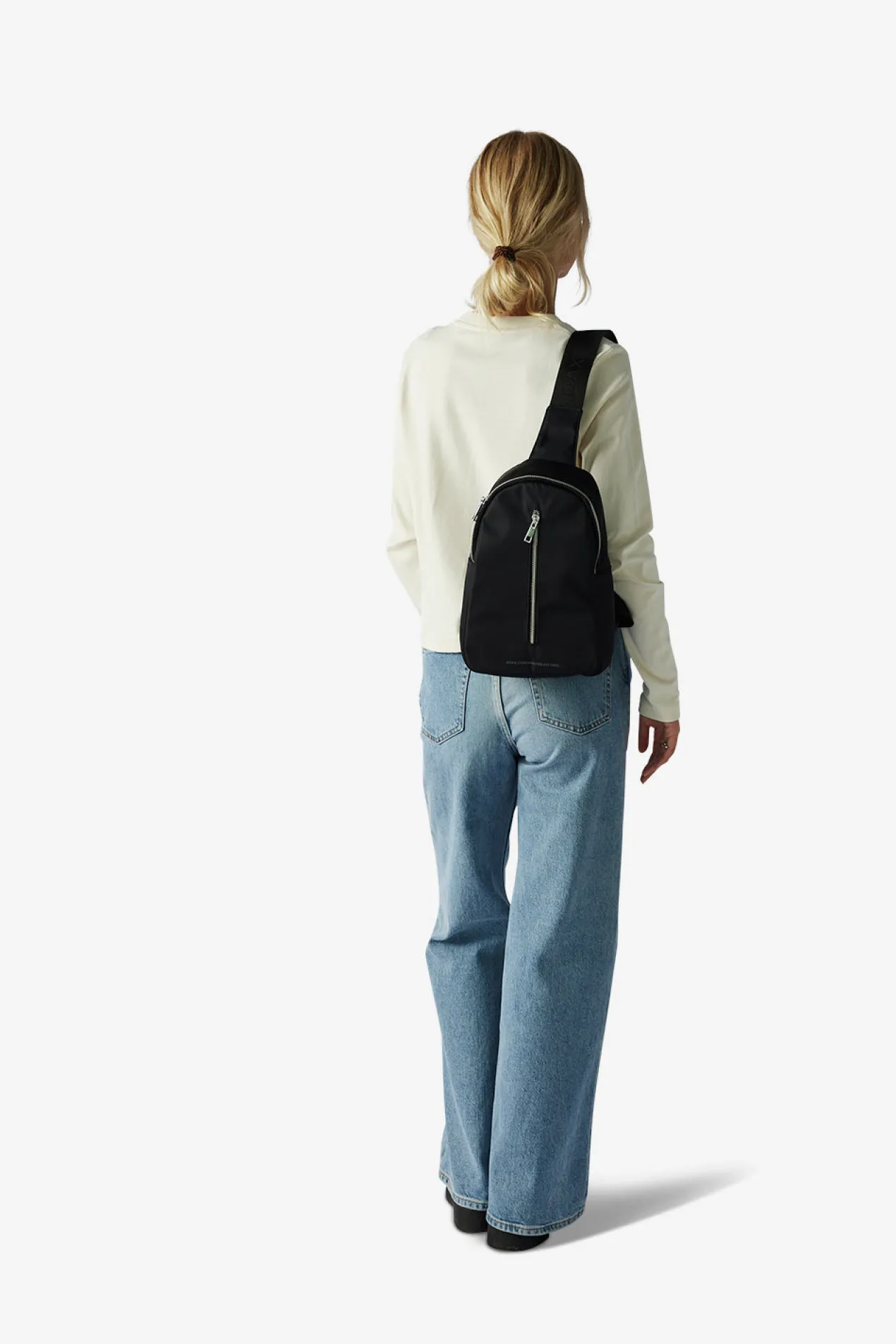 Tiger sling bag in Novara nylon by Adax. Super functional bag in water-repellent nylon. The bag comes with an adjustable strap with buckle. On the front there is a zip pocket and inside the bag consists of an open space, where on one side there is an open pocket and on the other side is a small zip pocket.