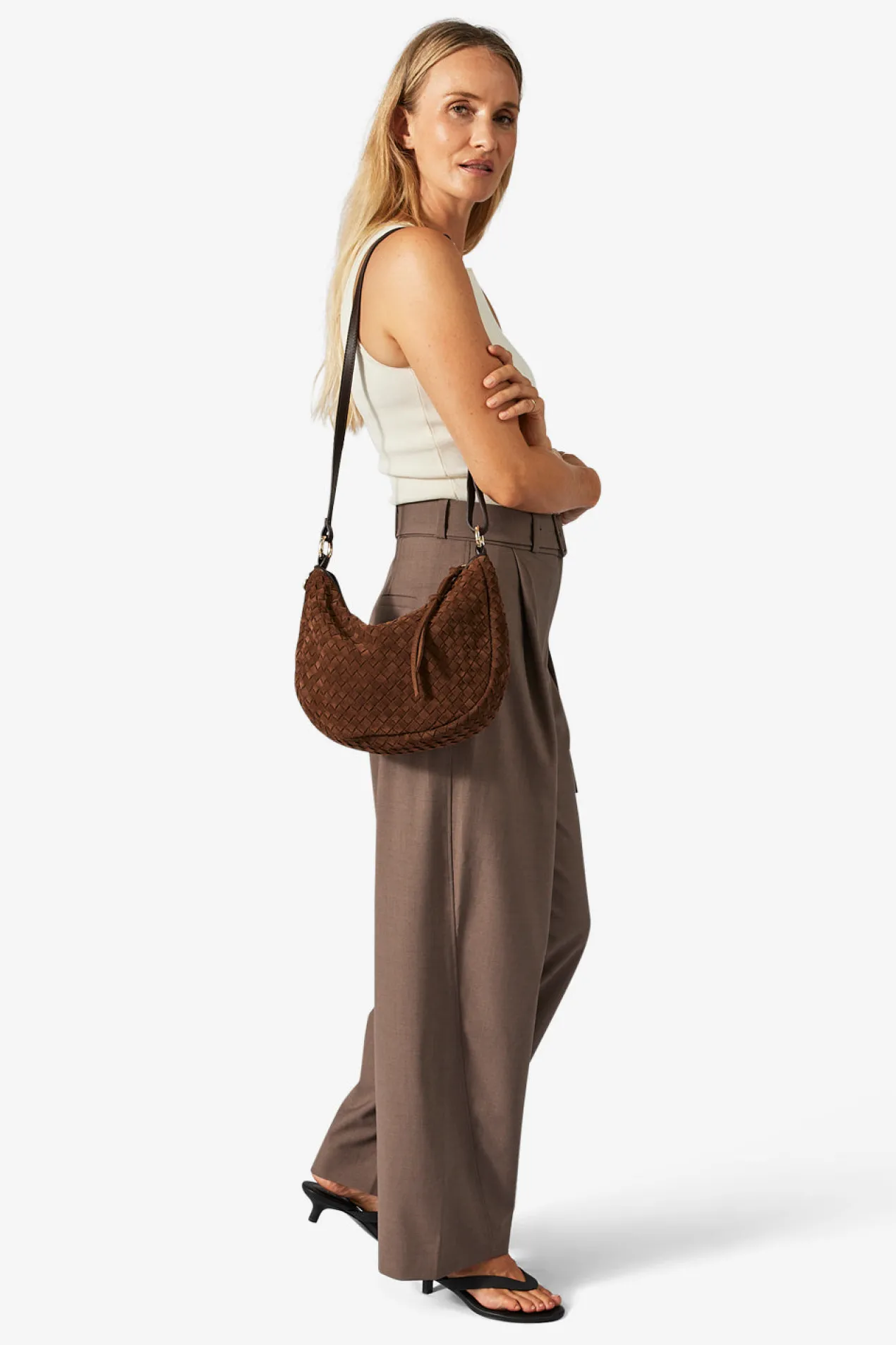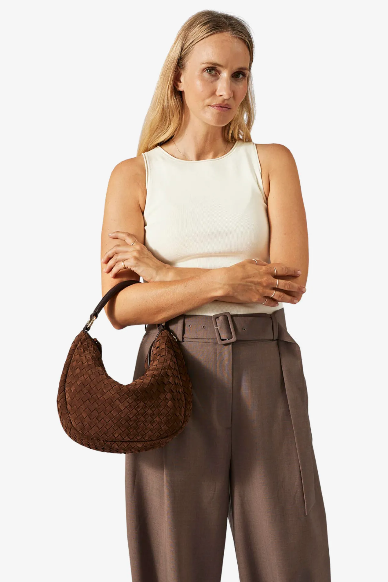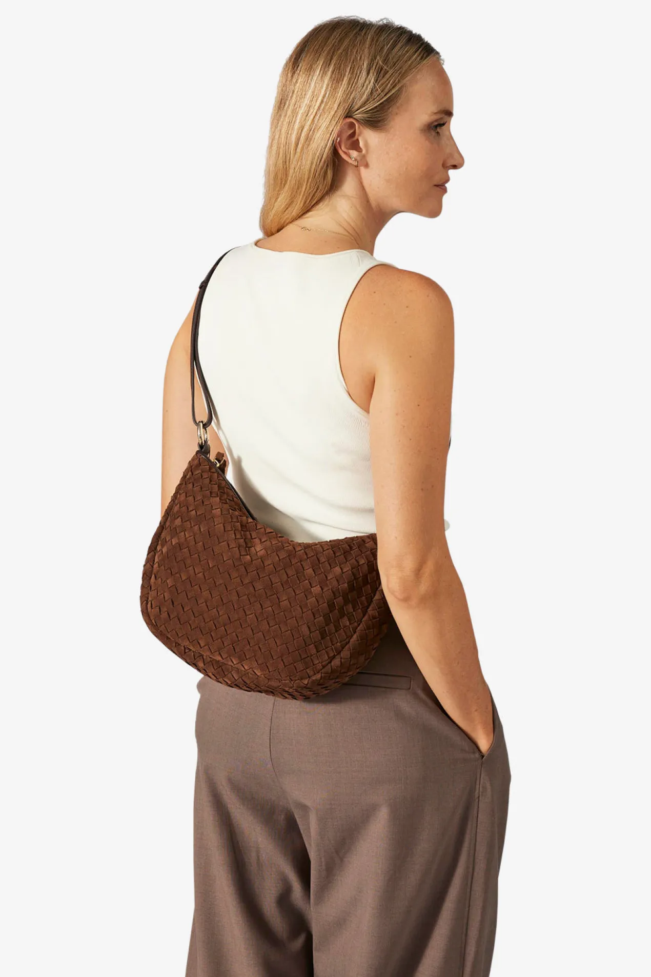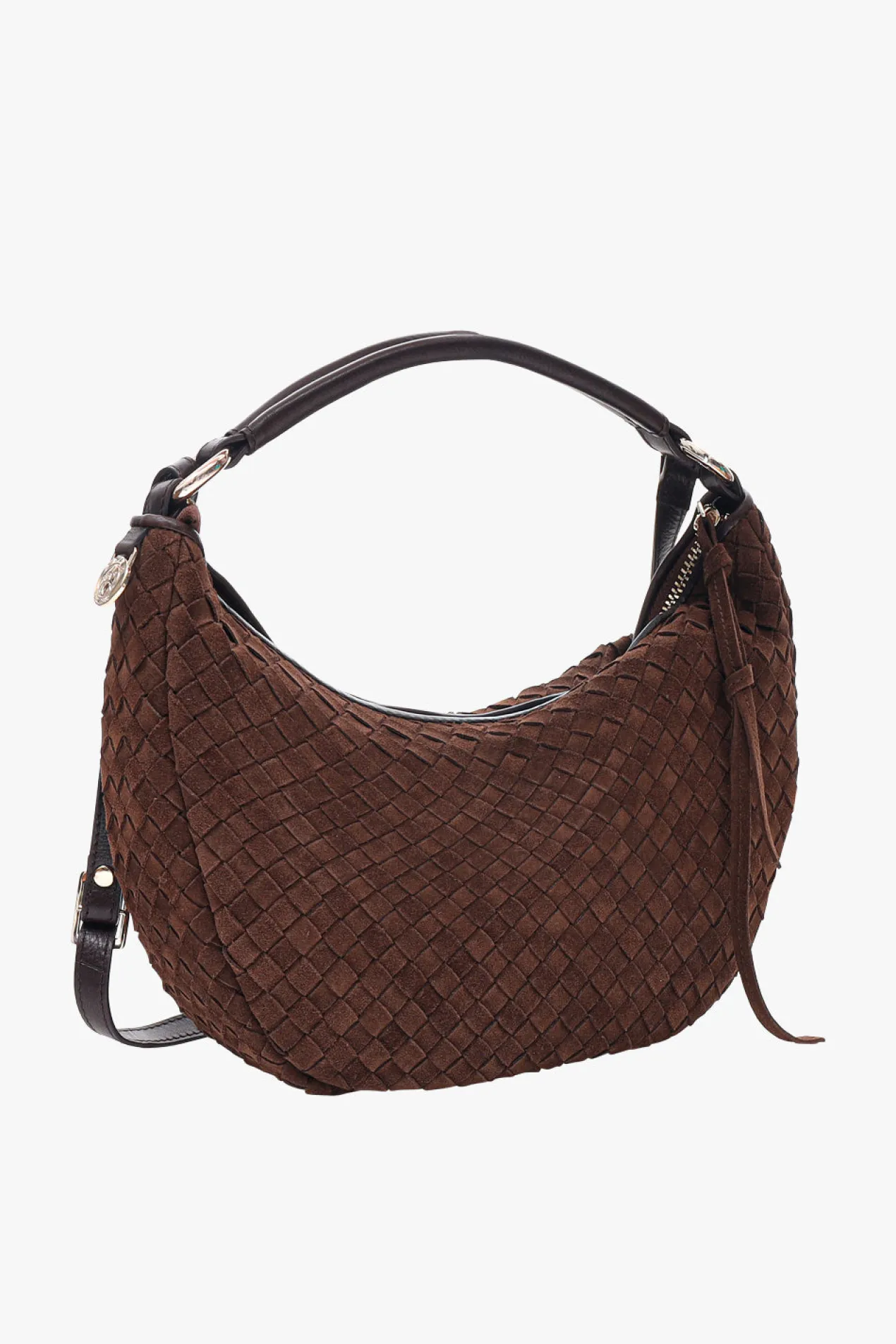 Crafted from luxurious suede with exquisite braiding. This versatile bag can be used as a chic handbag with the short strap or as a comfortable shoulder bag with the long, adjustable strap. Both straps are removable!The Marlin Shoulder Bag features a spacious main compartment along with two additional interior pockets, one of which is secured with a zipper. For added organization, a small tote bag is included.Additionally, the bag comes with a small leather cover perfect for storing credit cards.