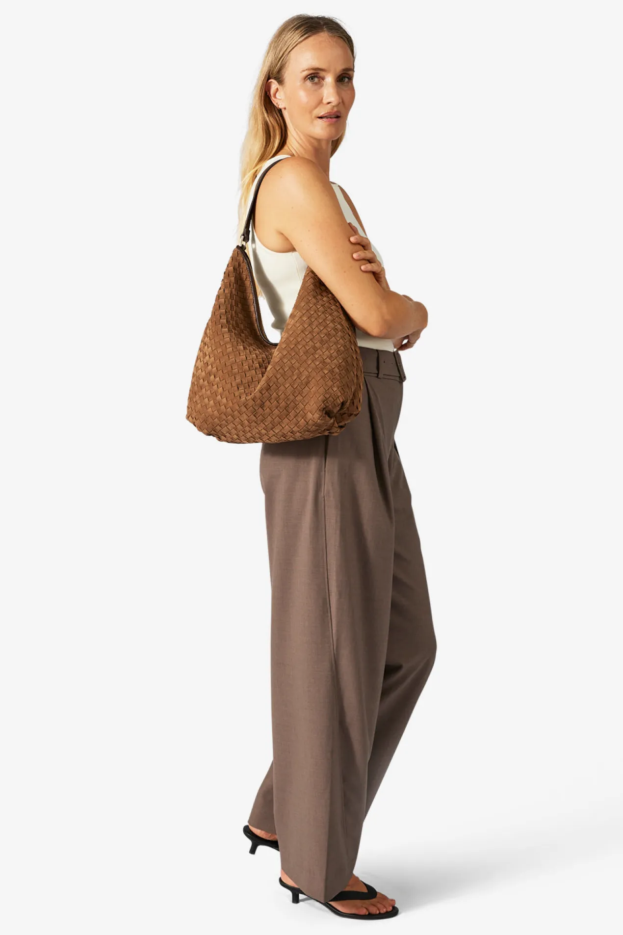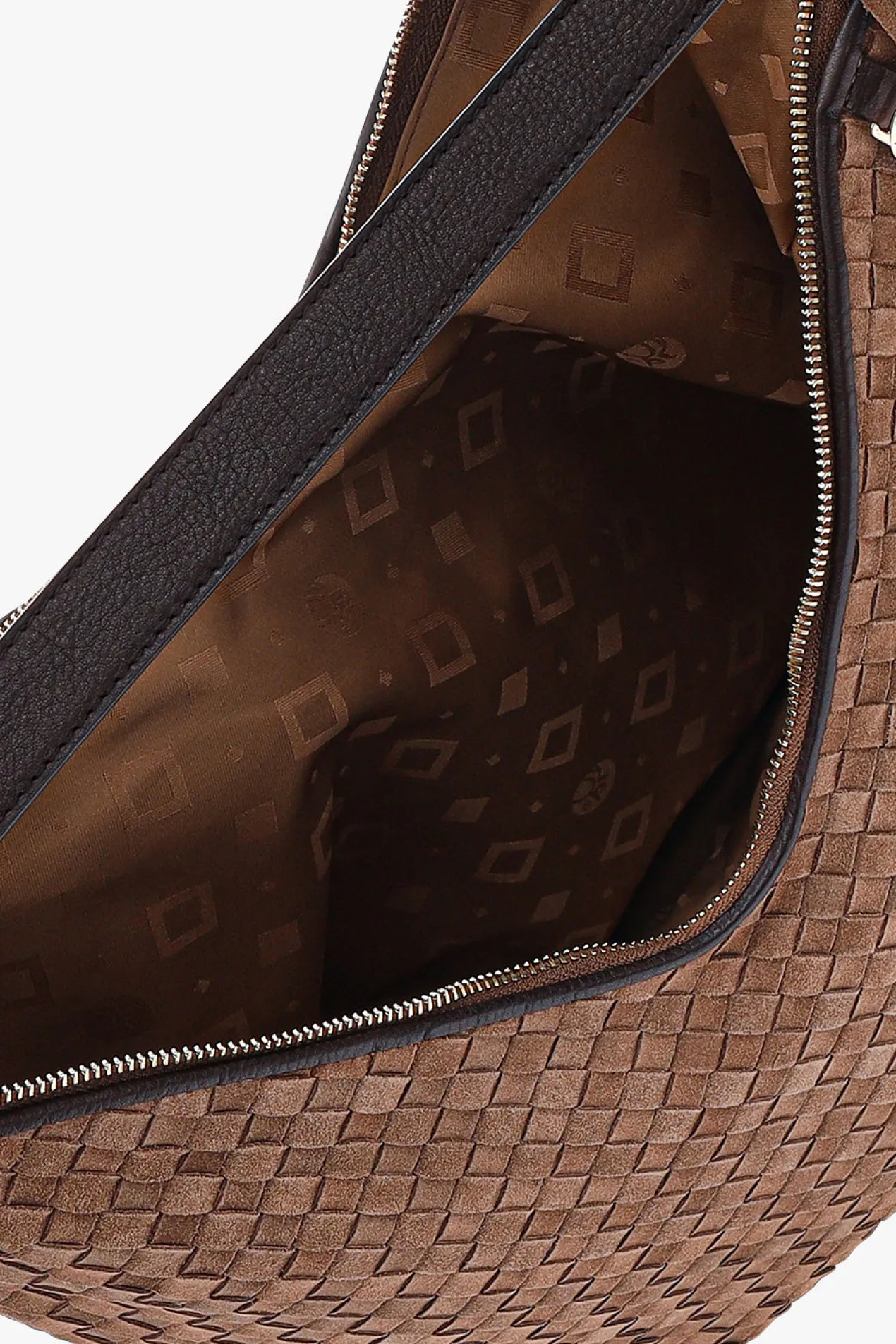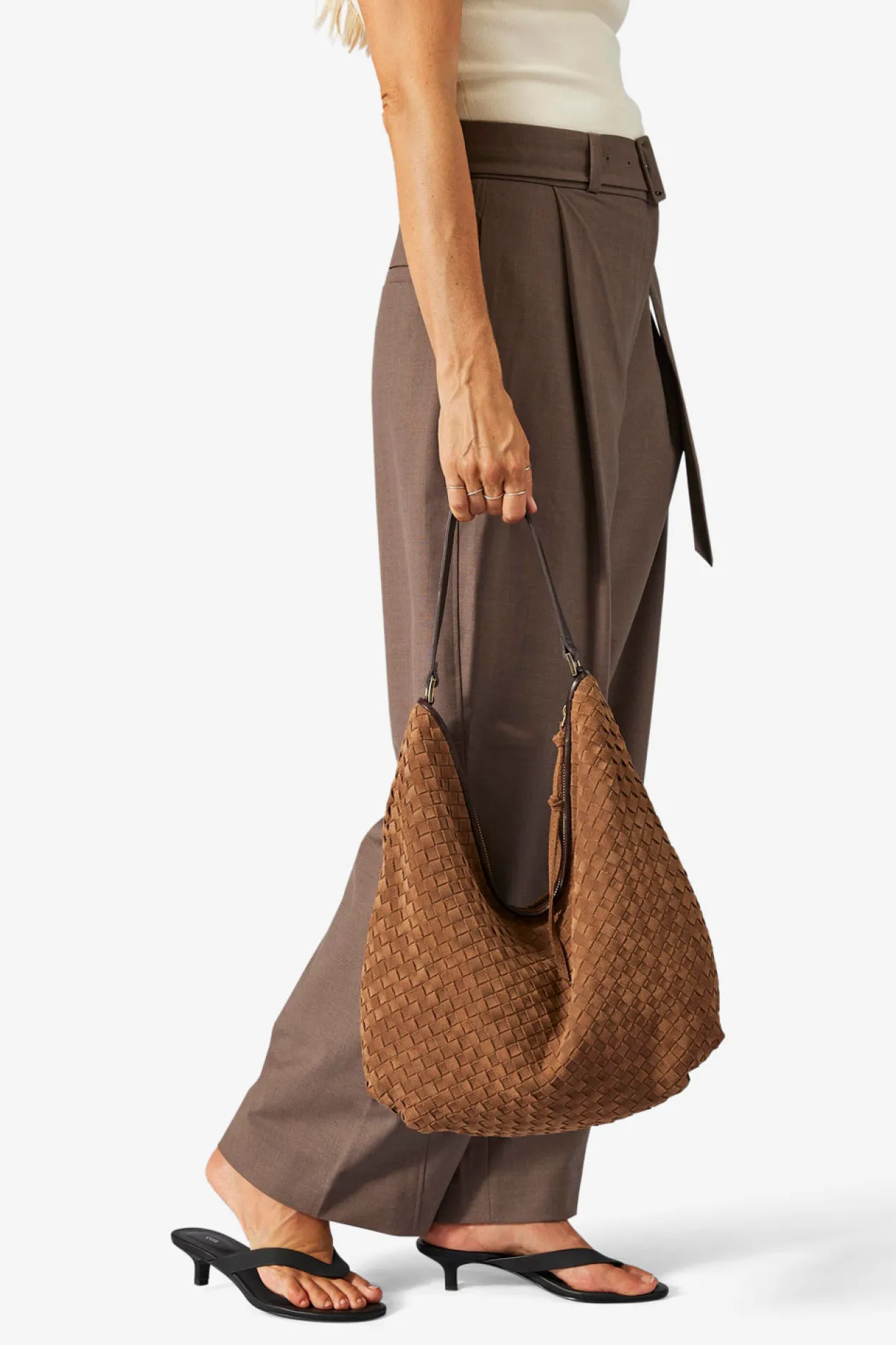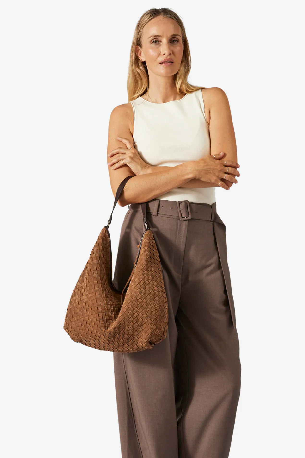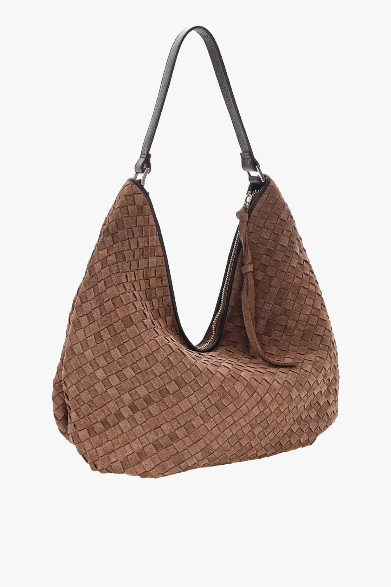 Crafted from hand-braided suede leather. This stunning bag features one spacious open compartment, providing ample room for your essentials. Inside, you’ll find a small zipper pocket for valuables and an open leather pocket, ideal for your mobile phone or other quick-access items.The bag’s unique top shape ensures a comfortable and easy carry on your shoulder. It closes securely with a zipper and includes a fixed carrying handle for added convenience.The Mindy Shoulder Bag comes with a practical tote bag and a small leather cover that doubles as a cardholder, combining elegance with functionality.