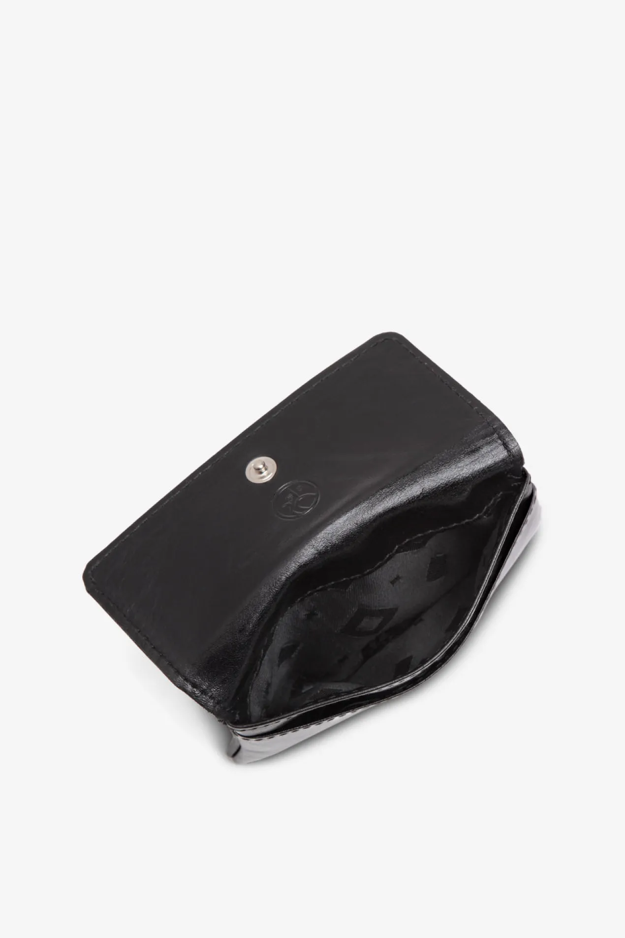 Gertrud is a small handy purse that fits in even very small bags and can store coins, notes and cards.The wallet has a flap and closes with a push button.This wallet has RFID protection