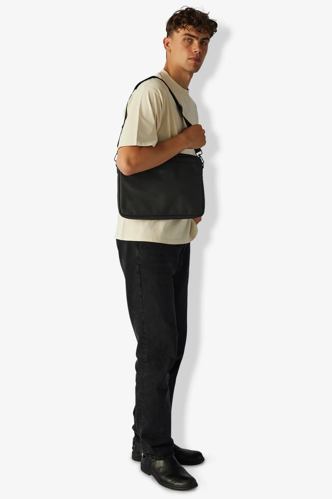 Juno is the perfect light work bag with a rubberized surface, which makes the bag and the zipper construction water resistant. Juno has a simple, stylish and timeless design, so you can safely use Juno season after season, and still fit into fashion.At the front of the bag is a large pocket with velcro closure. On the back of Juno is a visible vertical zipper pocket, which gives the bag a cool look. Juno is opened at the top with a zipper, in which there is a large compartment and a large pocket on the side, which is made with extra protection for your computer.The bag has a detachable and adjustable shoulder strap. The shoulder strap is made of thick nylon, and therefore fits really well on the shoulder without falling down.The bag can hold a computer up to 13”.