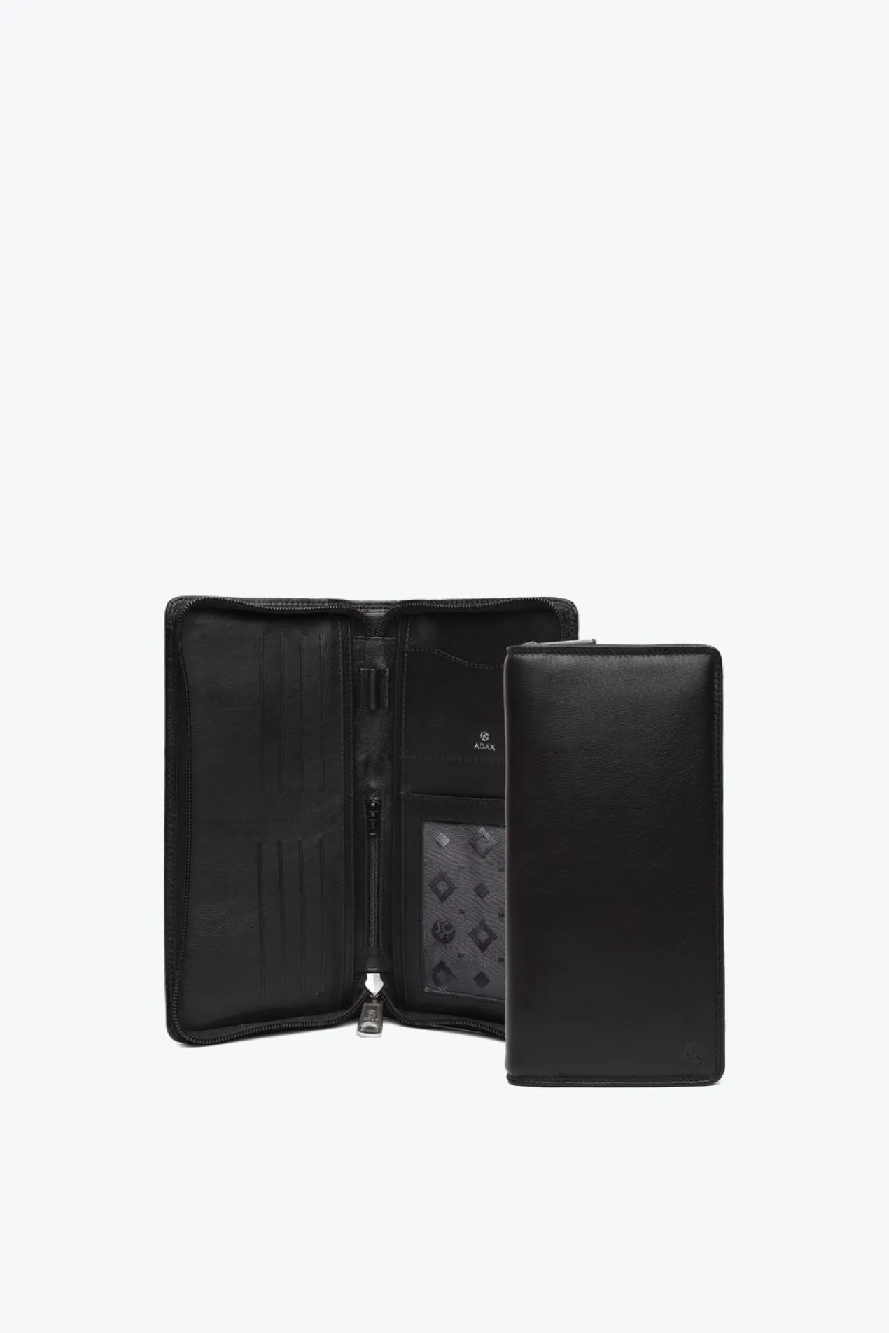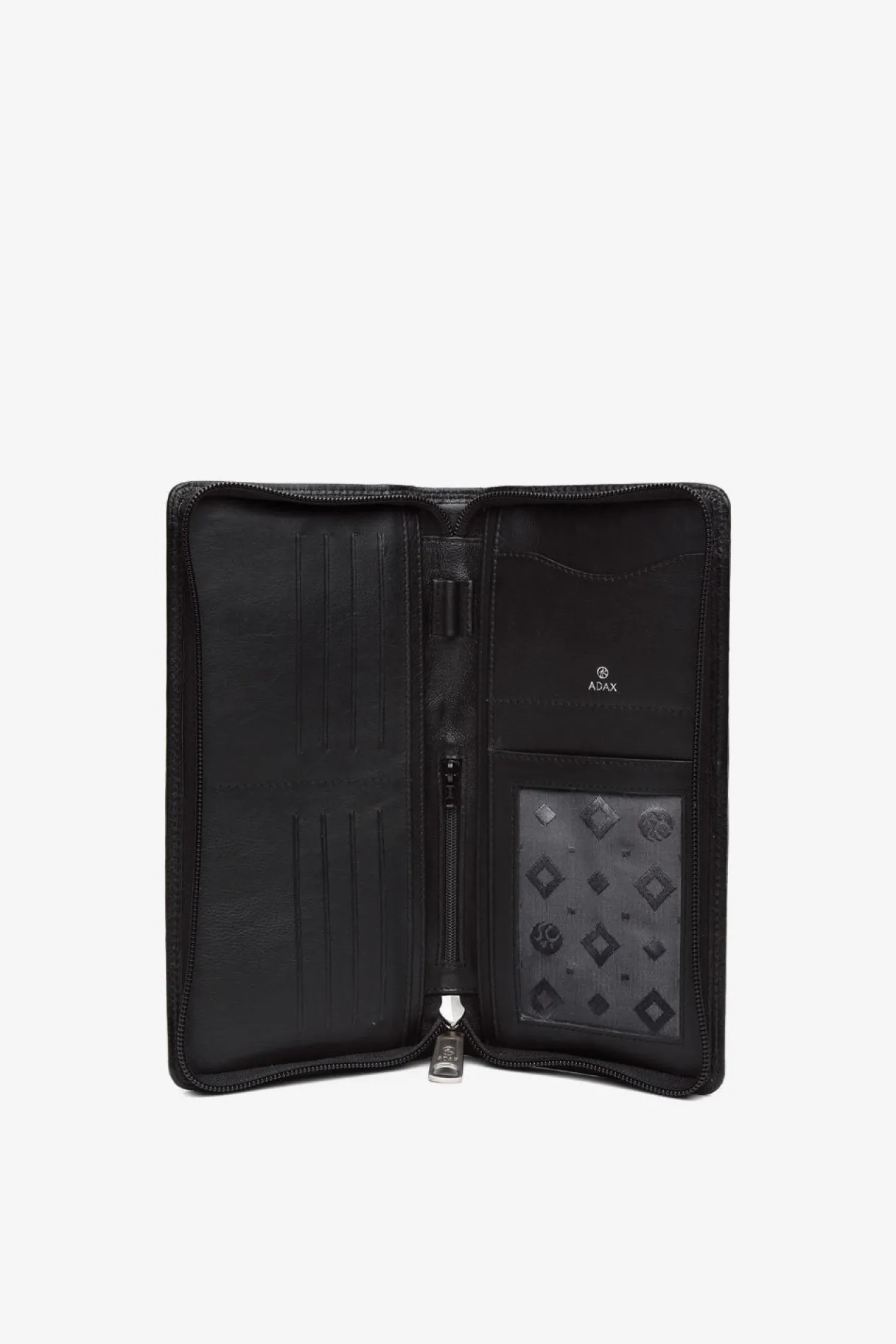 Alfons travel wallet in soft Sesto leather from Adax. Practical and functional travel wallet with space for passports, mobile, credit cards, travel documents etc. The wallet has a small pocket for coins, 9 credit card slots and a pen holder. Closes with zipper on three sides. The wallet has RFID protection.